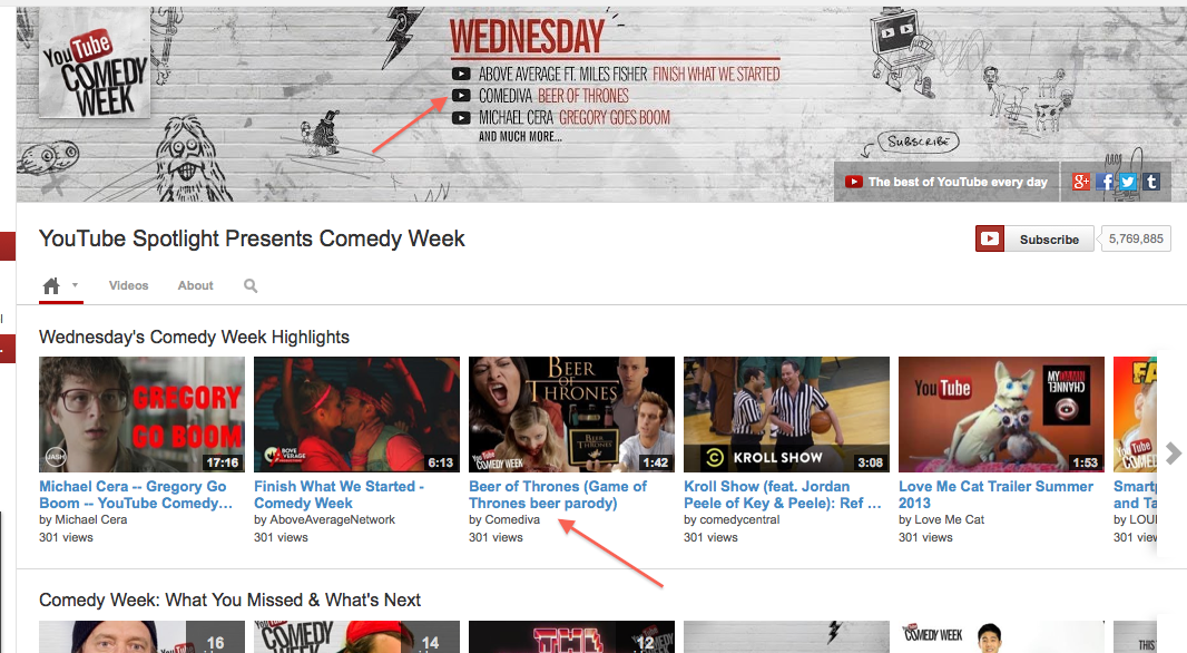 On the heels of Comediva’s participation in YouTube NextUp and the YouTube Comedy Lab, we were invited to be featured during a very special cross-promotional event called YouTube Comedy Week. The event featured YouTubers and celebrities coming together to celebrate online comedy.